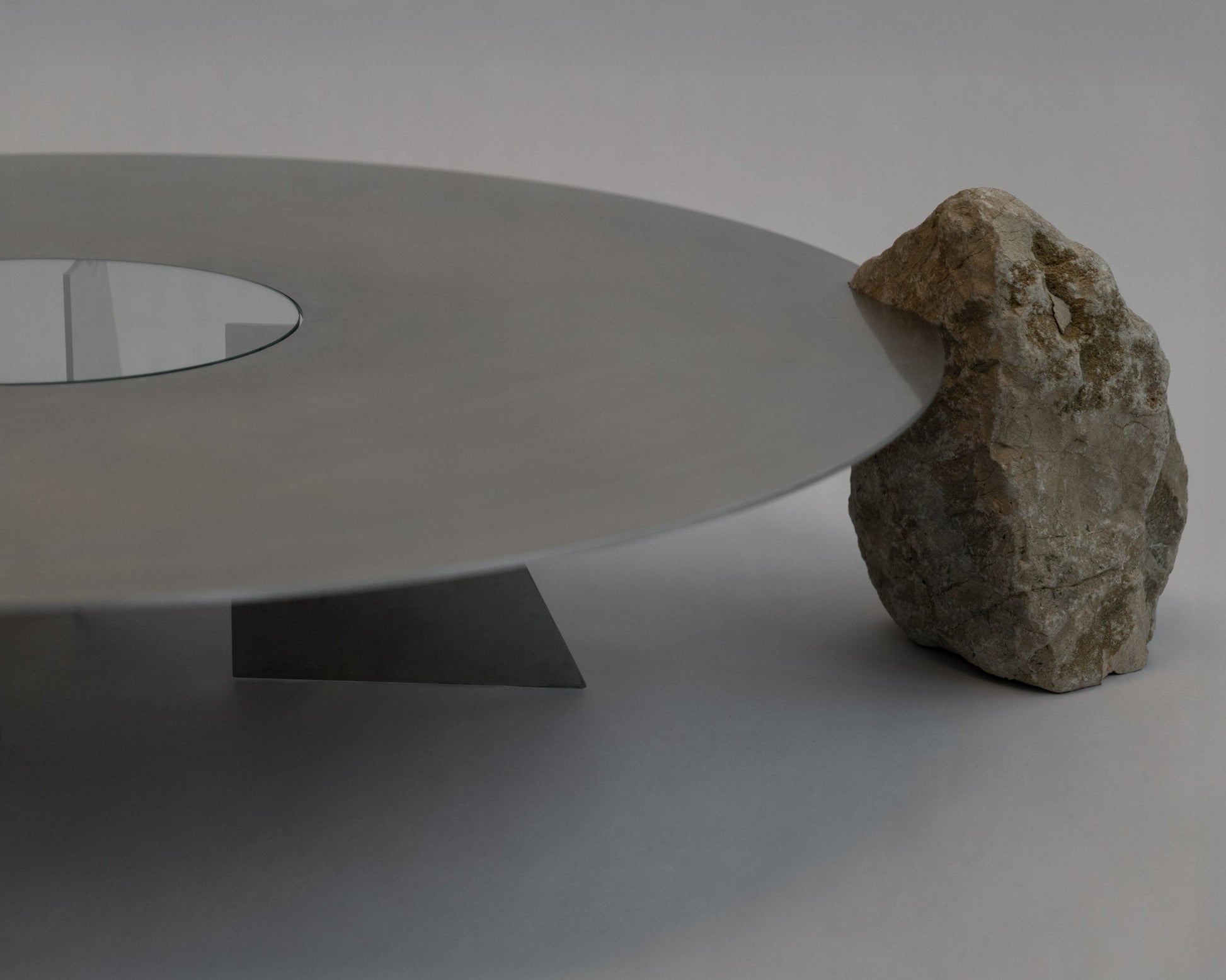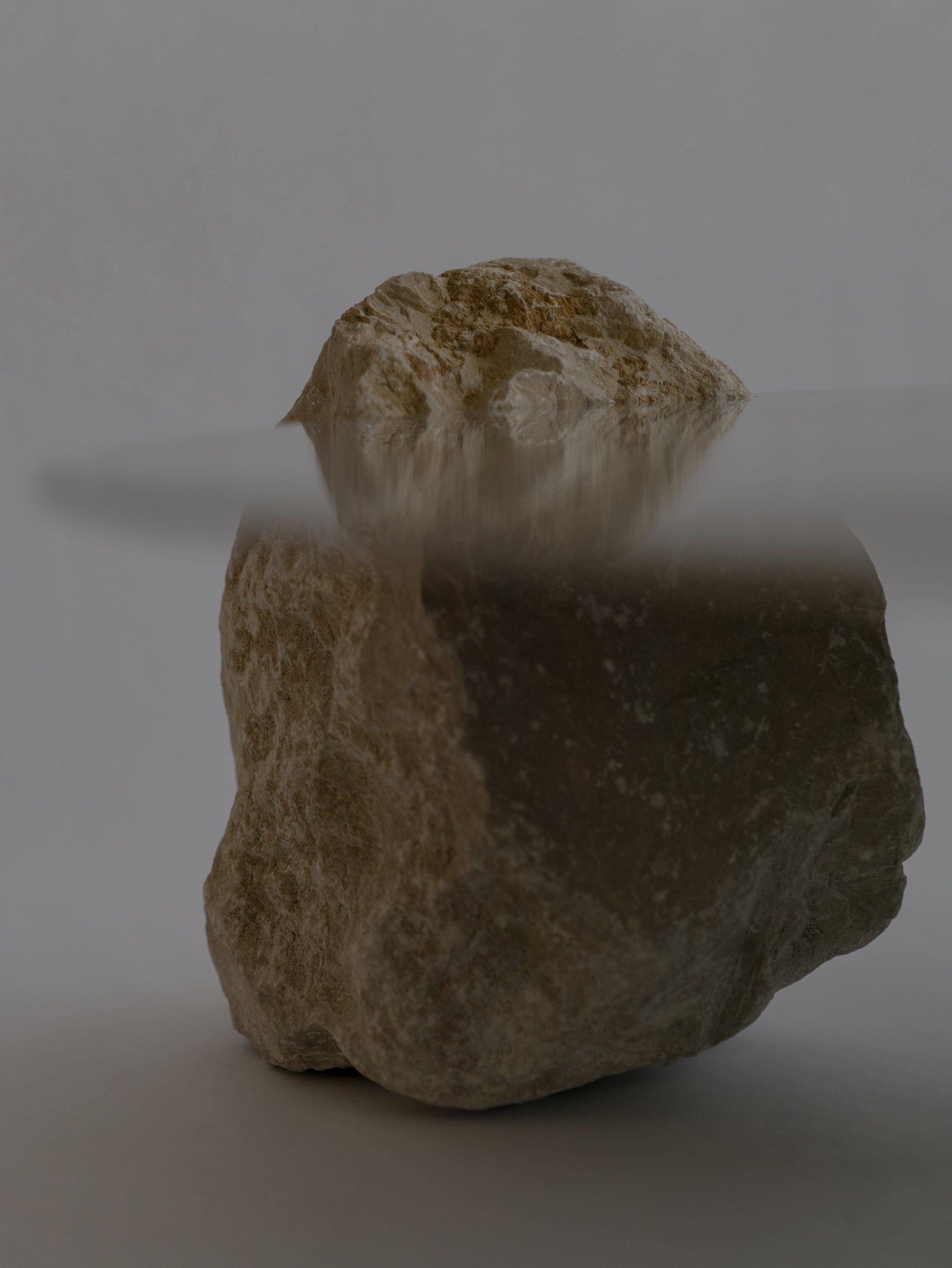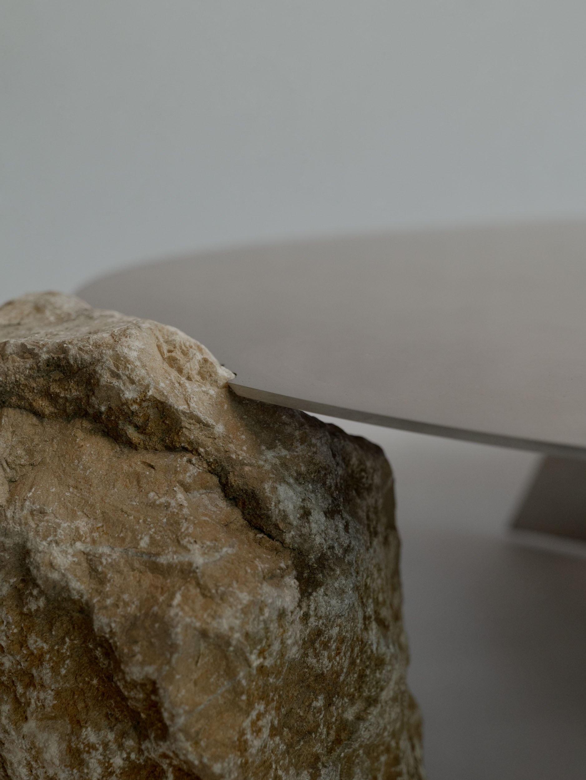 Wir präsentieren den Beistelltisch Merge, entworfen vom Künstler Jakub Kubica im Jahr 2022. Mit einer sorgfältig gefertigten, 4 mm dicken Aluminium-Tischplatte, die eng um den natürlichen beigen Sandstein herum geschnitten ist. Der Ansatz des Künstlers respektiert die Natur, indem er ihre Form aufgreift und in das Design integriert und so die Schönheit der rauen und natürlichen Welt widerspiegelt. Jeder Merge-Beistelltisch ist ein einzigartiges Stück und eine besondere Ergänzung für jeden Wohnraum.