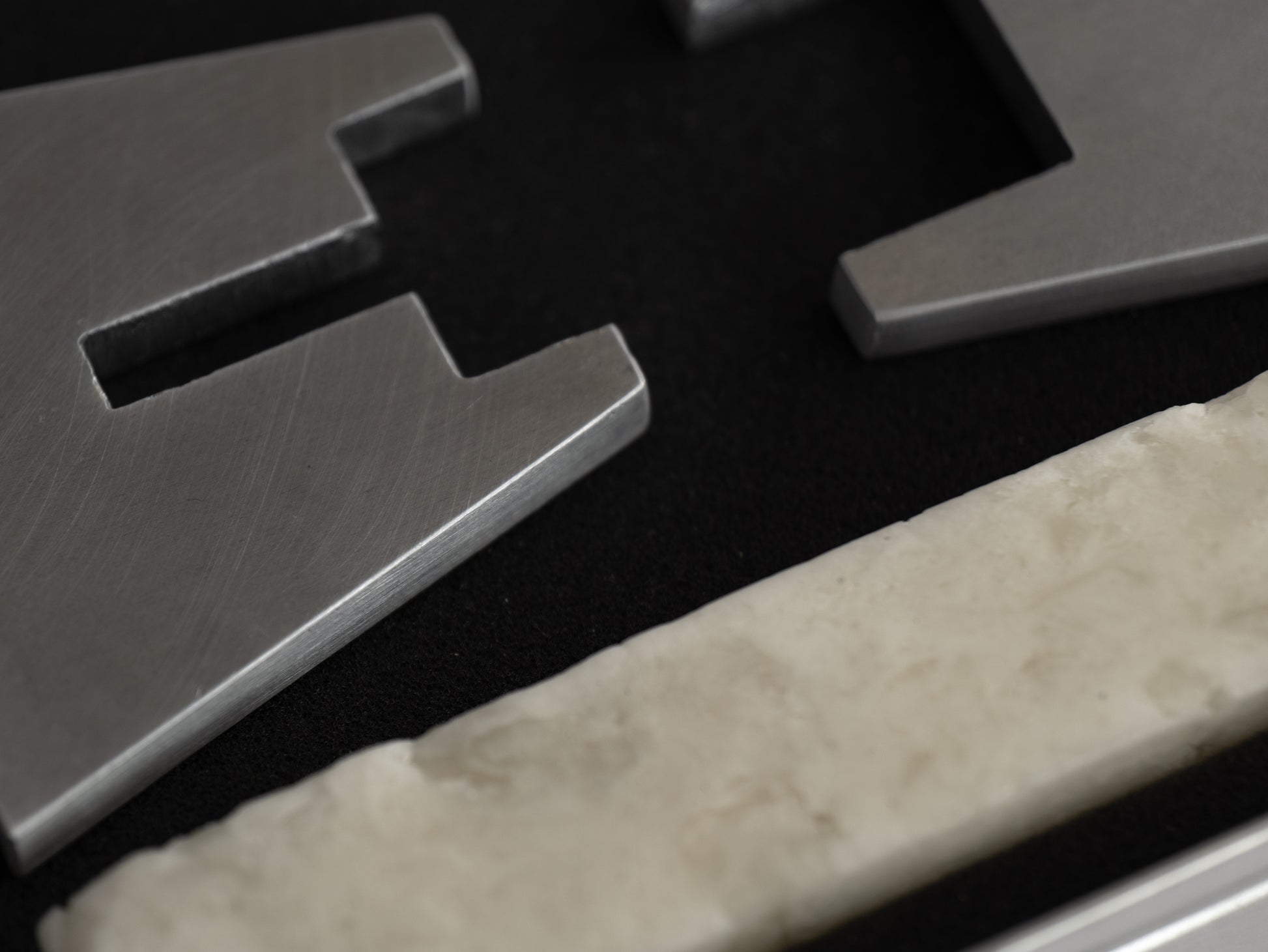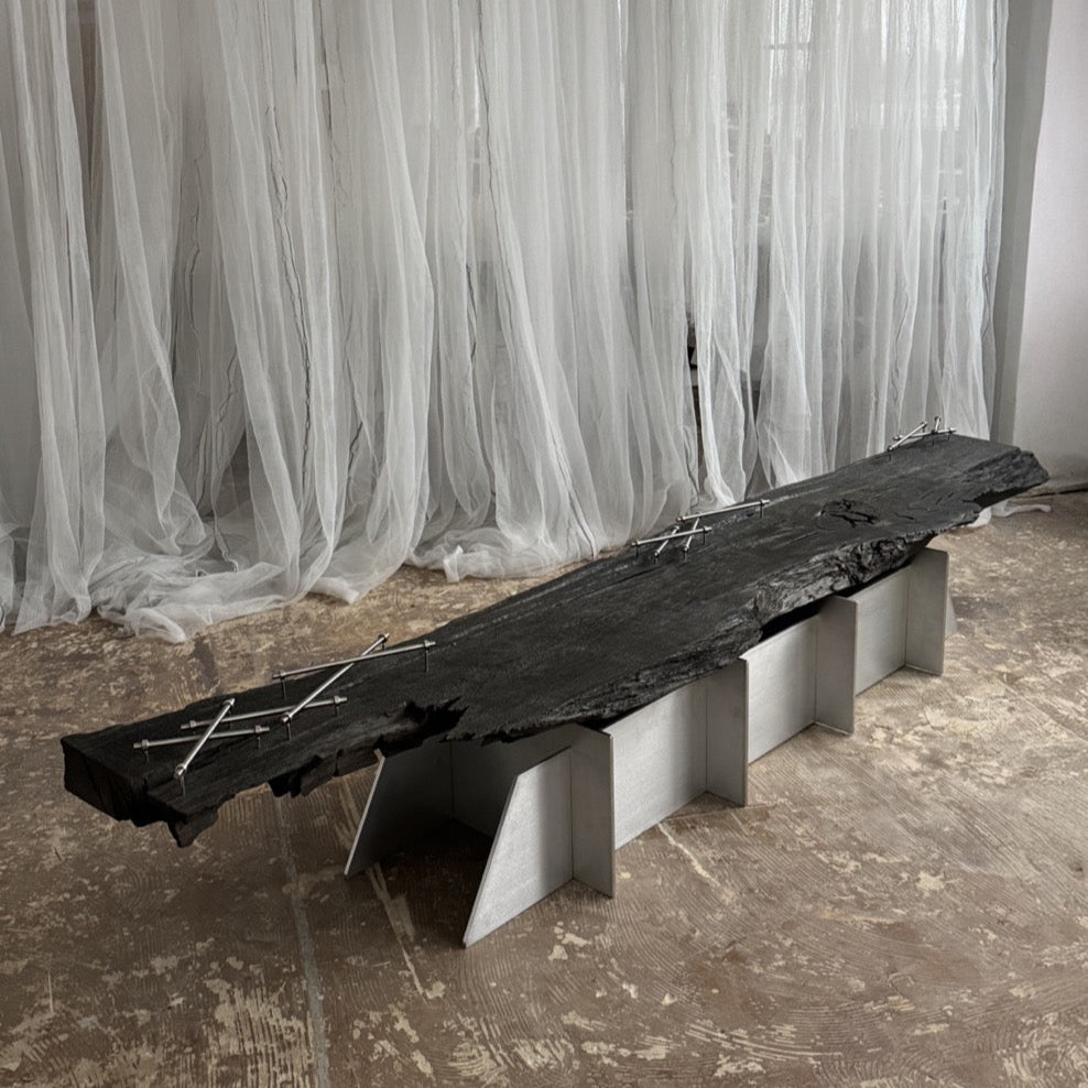 The artwork is made from one of the oldest and rarest woods: 3,370-year-old subfossil oak. Found on the former riverside of the Elbe River near Prague. The wood was extracted from a depth of 8 meters underwater with the help of divers and heavy machinery. It is characterized by its unique texture, dark colors, and high hardness, which give it a natural shine.