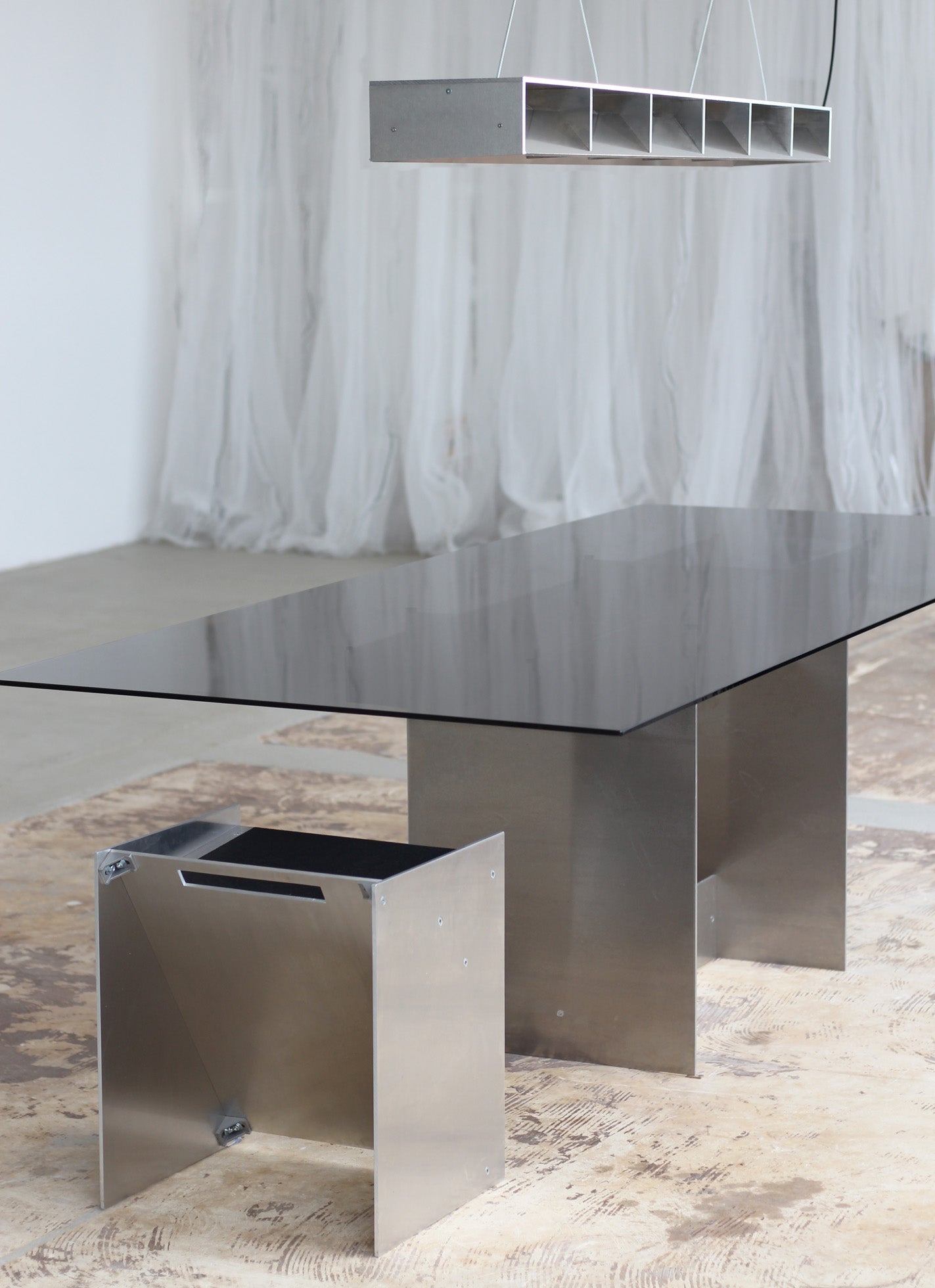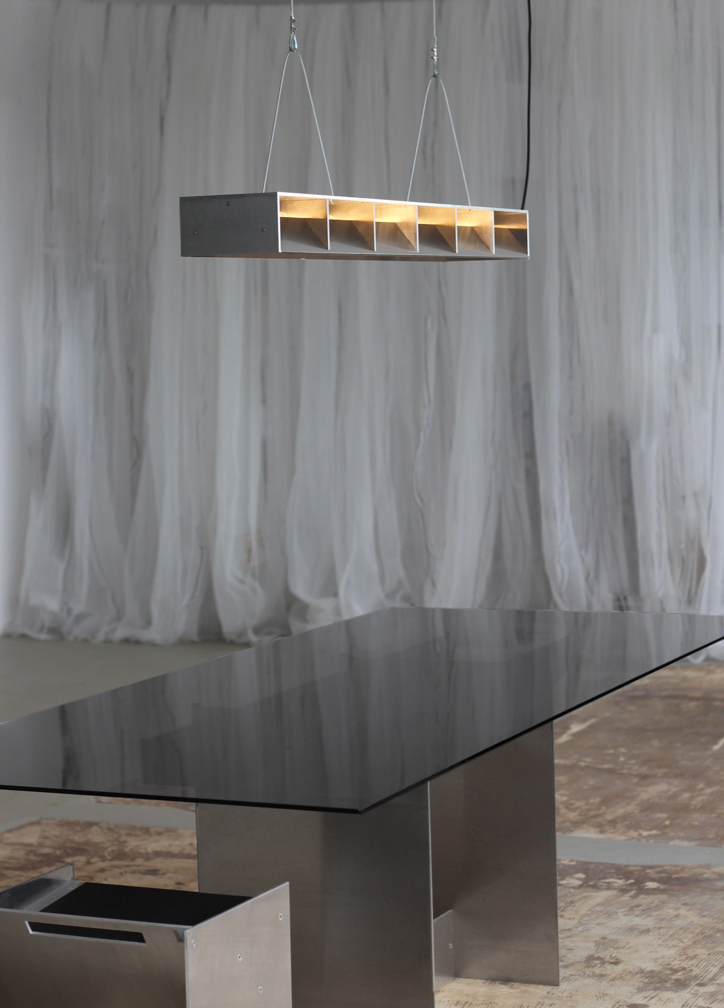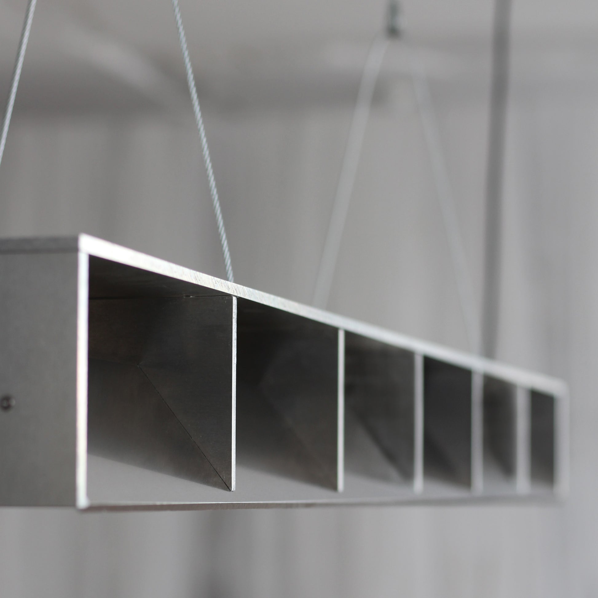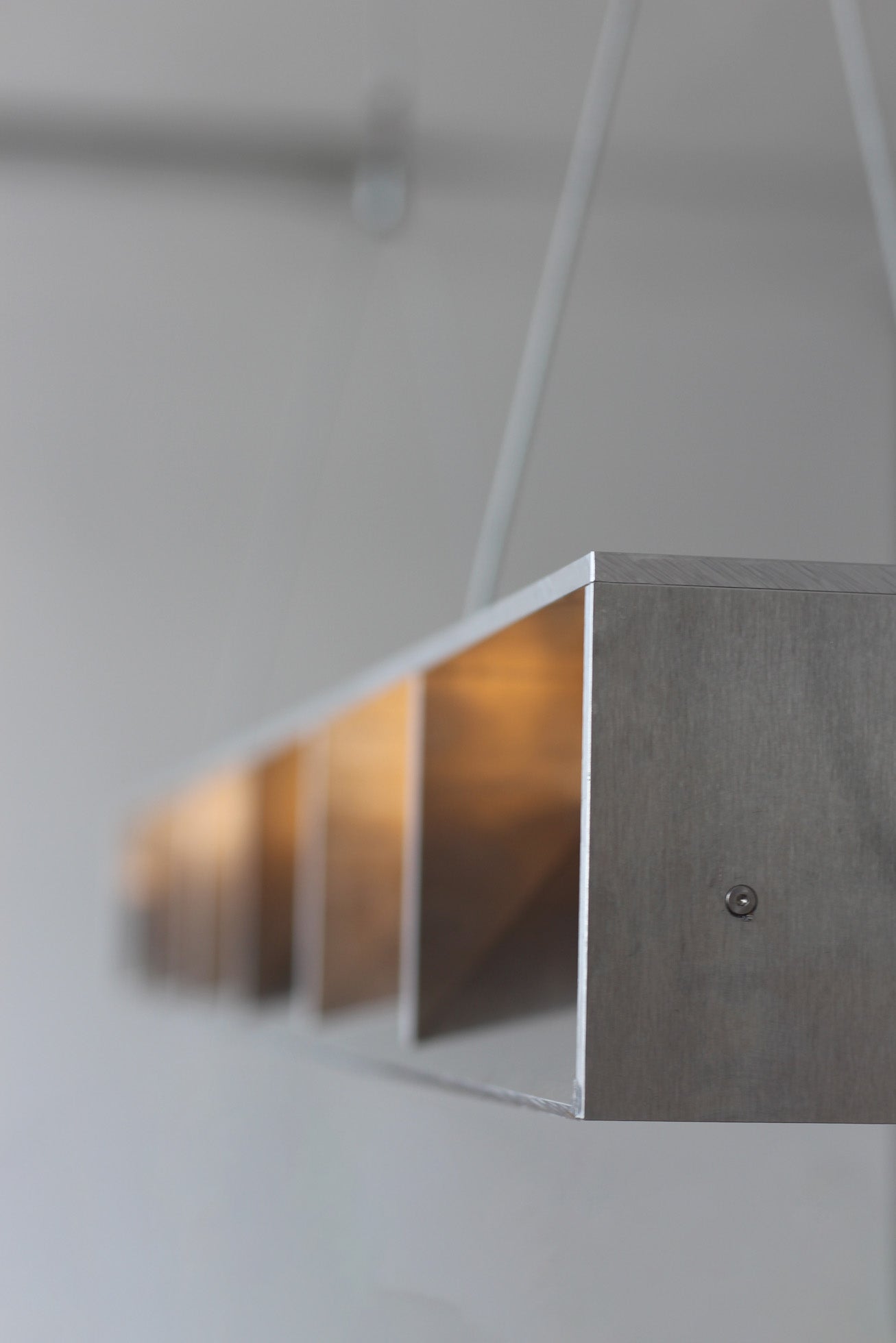 Entworfen 2023 von Jakub Kubica. Die Leuchte wird in unserem Atelier in der Nähe von Berlin aus 6 mm starkem Aluminium gefertigt. Stahldrähte sorgen für stabilen Halt, und die Kabellänge kann auf Anfrage individuell angepasst werden. Mit 18 Watt warmweißem LED-Licht (1650 Lumen) eignet sich dieses vielseitige Stück perfekt zur Beleuchtung Ihres Wohnbereichs oder über Ihrem Ess- oder Küchentisch.