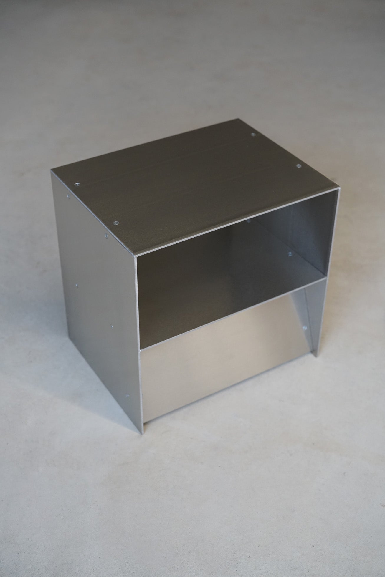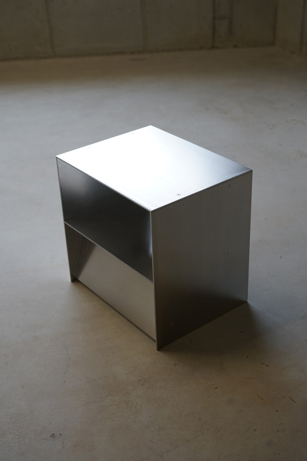 ベルリン近郊のアトリエで、耐久性のあるアルミニウムから手作りされています。一つ一つ丁寧に手作業で研磨し、天然蜜蝋で磨き上げることで、指紋が付きにくい仕上がりを実現。職人の手による独特の凹凸が、その美しさを物語っています。