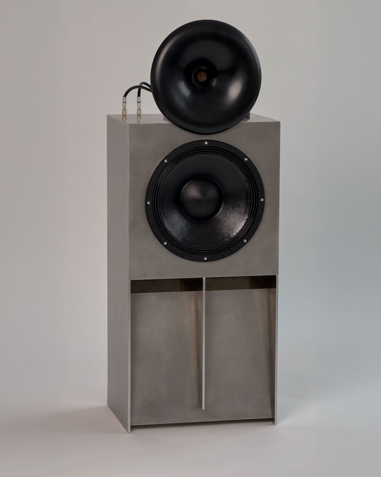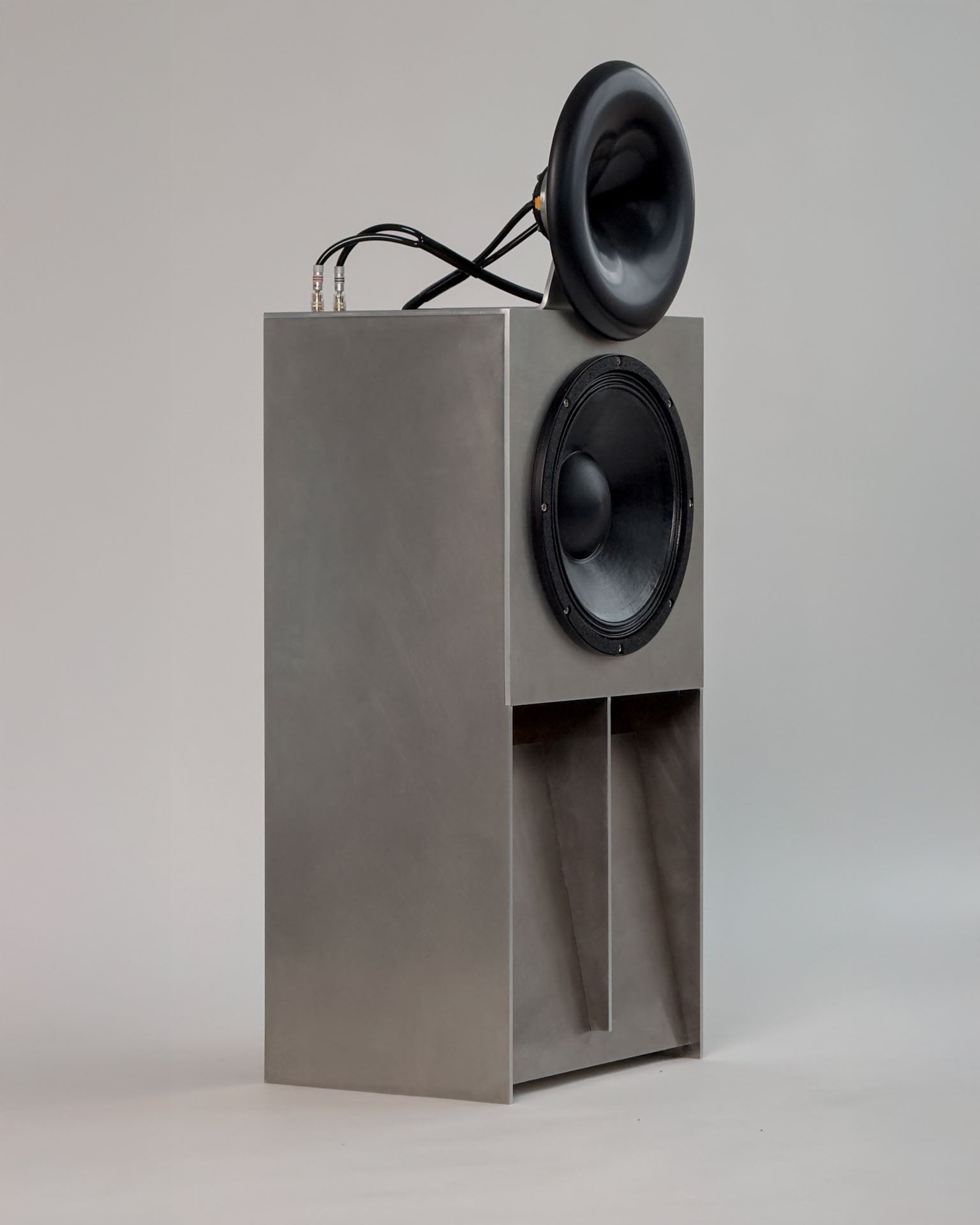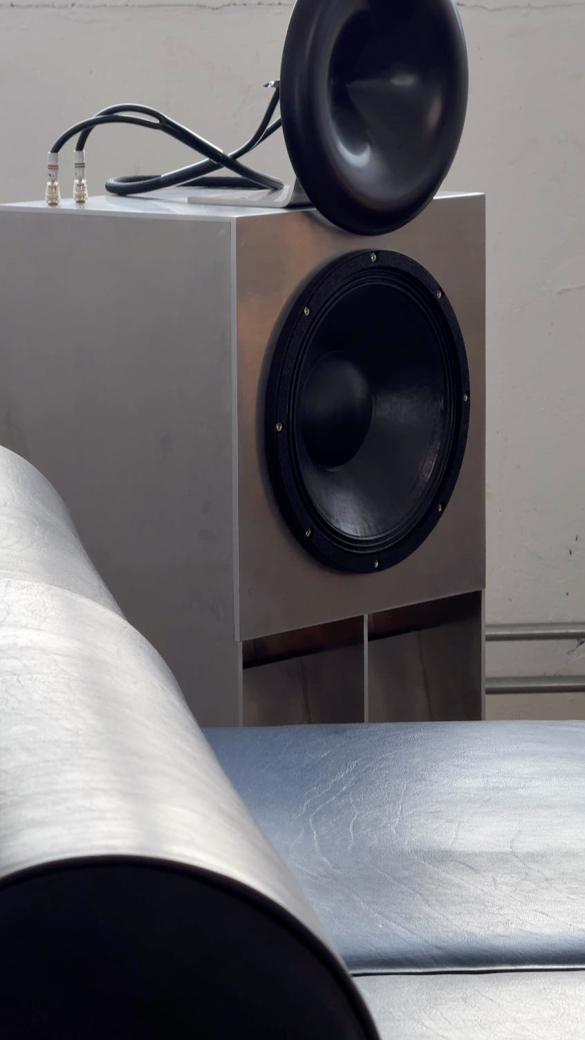 The Aluma Speaker was developed in partnership with "phoniq audio," a company specialising in high-end, custom-built sound systems. Inspired by 1960s theatre sound, the Aluma Speaker blends vintage aesthetics with modern audio technology to provide exceptional sound quality for professional studios and home environments. The speaker body is crafted in our atelier from 6mm thick aluminium.